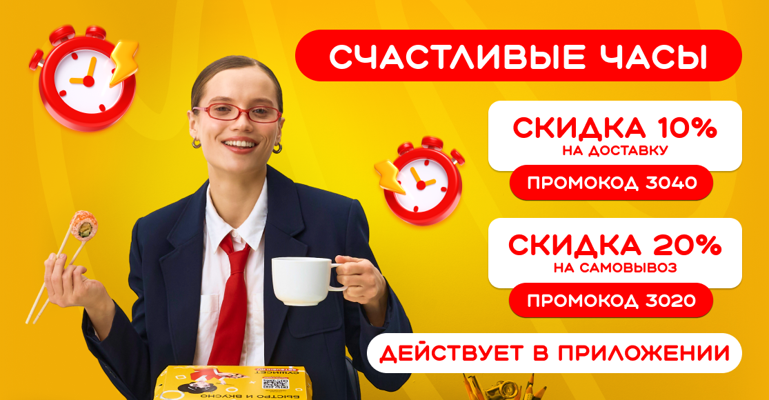 😍 Самое вкусное время 😍 Используй счастливые часы с пользой для себя и близких. Скидка на доставку или самовывоз - выбирать тебе!